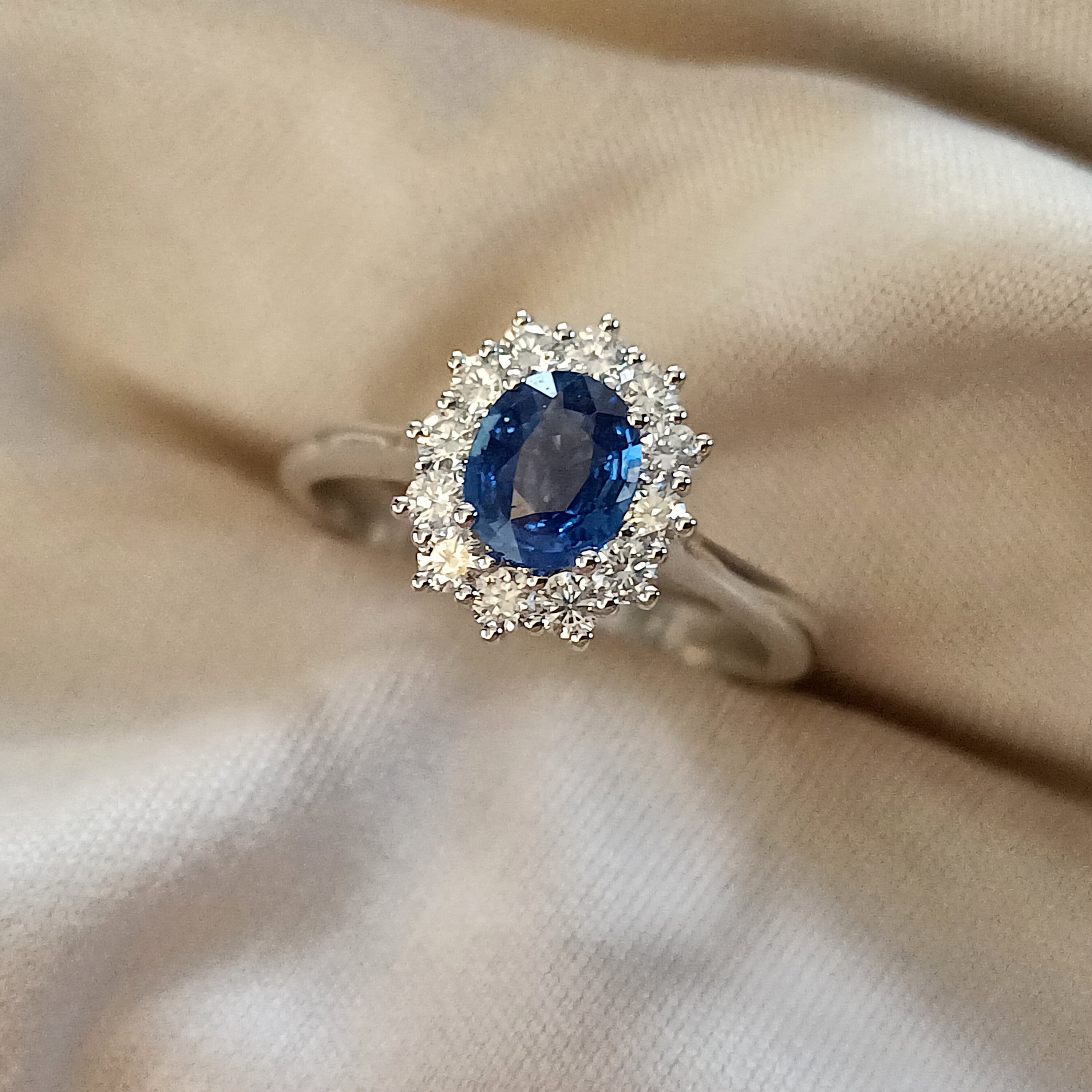 Pietra centrale: Zaffiro Blu Profondo Amelisé®, dal colore intenso e magnetico, simbolo di eleganza senza tempo